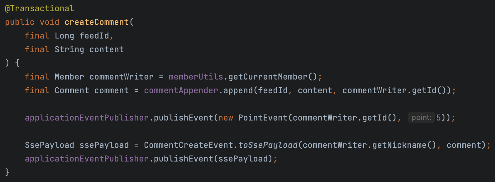 또한, 예외과정도 생각해봐야 한다. 댓글이 생성되지 못하는 예외가 발생하면, 알림도 전송되어선 안된다.