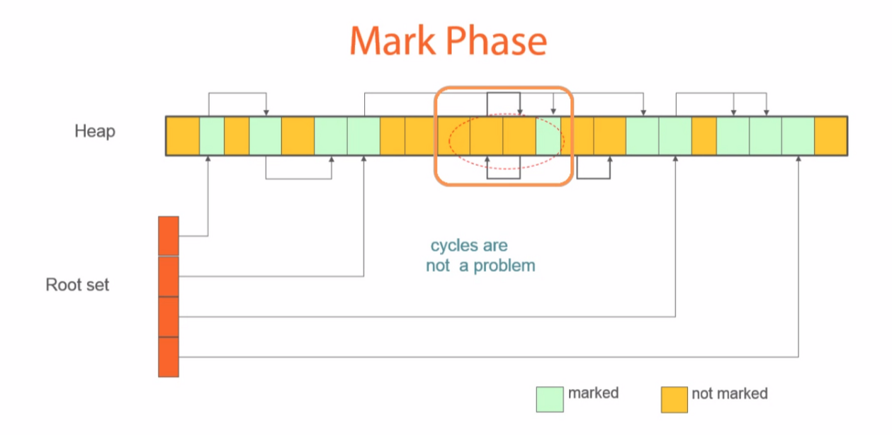 이를 통해서 Root space로부터 연결이 끊긴 순환참조 되는 객체들은 모두 지울 수 있다. Java와 JS가 이런 방식으로 정리한다.
