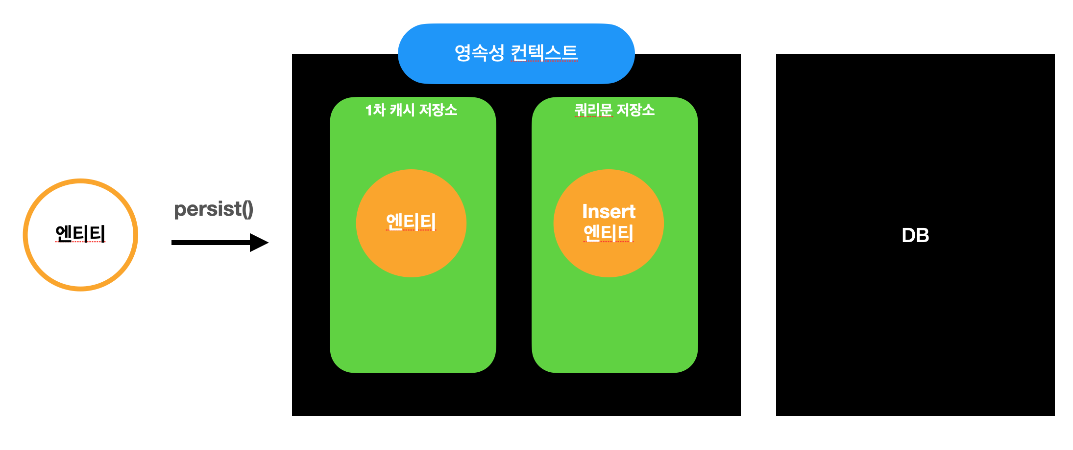 이 함수를 통해 엔티티가 1차 캐시에 저장이 된다 + 엔티티를 저장하는 Insert 쿼리문이 쿼리문 저장소에 생성된다.